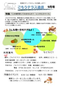 9月20日にごもうテラスお披露目会として映画会をします 投稿日 2025年9月11日 更新日 2025年10月1日 著者 Terrace_admin カテゴリー アゴラ創研 ごもうテラスのお披露目を兼ねて、映画会をします。映画の後はゲームもするよ! 開場:9:30~上映:10:00~参加費:無料持ち物:水筒・スリッパ・座布団 お申し込みはごもうテラス 070-8545-2245 PDFのご案内はこちら